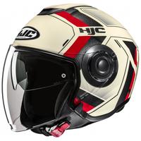 Atviras motociklininko šalmas HJC i40N Velu MC1 smėlio spalvos-juoda-raudona