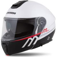"Cassida Modulo 2.1 Compass" apverčiamas motociklininko šalmas perlamutrinis baltas-juodas-raudonas-sidabrinis