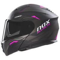 NOX N968 Ultra matinės juodos ir rožinės spalvos apverčiamas motociklininko šalmas