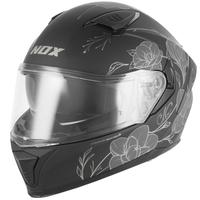 NOX N402 motociklininko šalmas su polikarbonato kevalu turi integruotą skydelį nuo saulės ir saugos sistemą, leidžiančią greitai nuimti skruostus.
